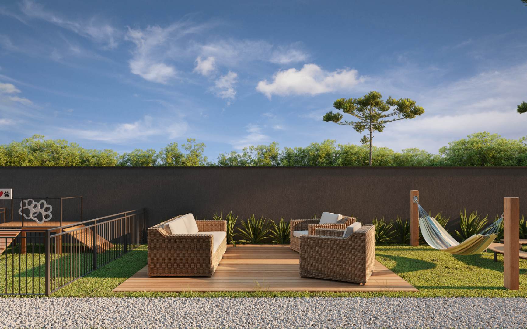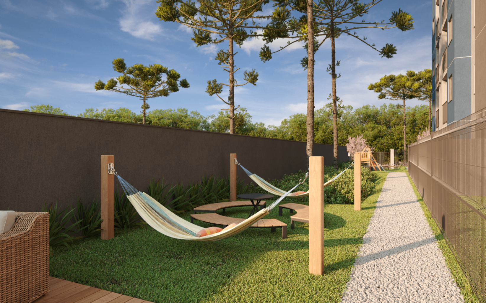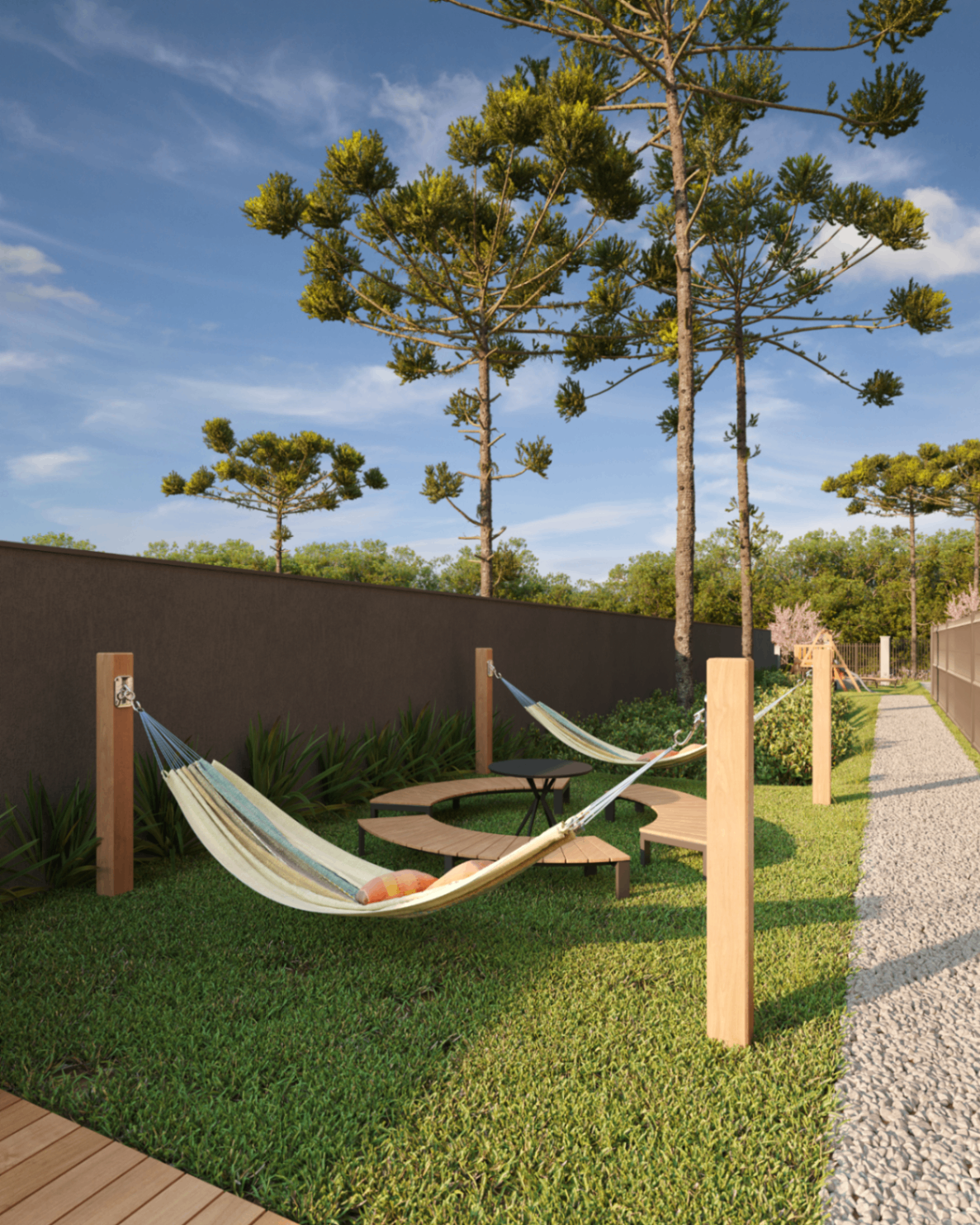 O condomínio foi planejado para oferecer espaços que promovem lazer, descanso e integração entre os moradores.
