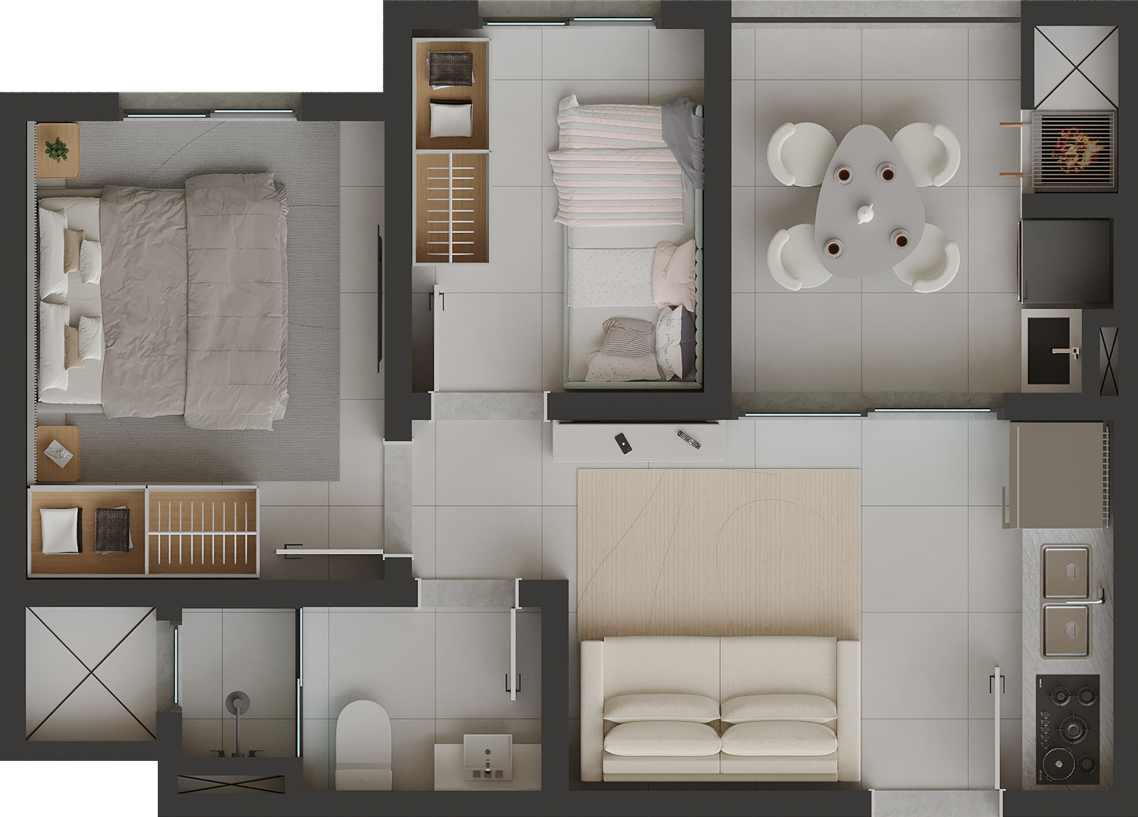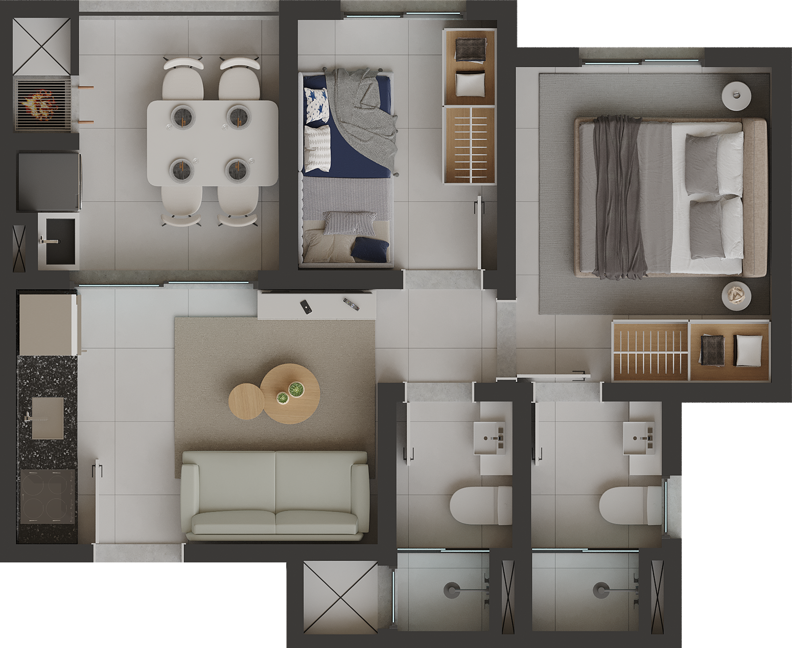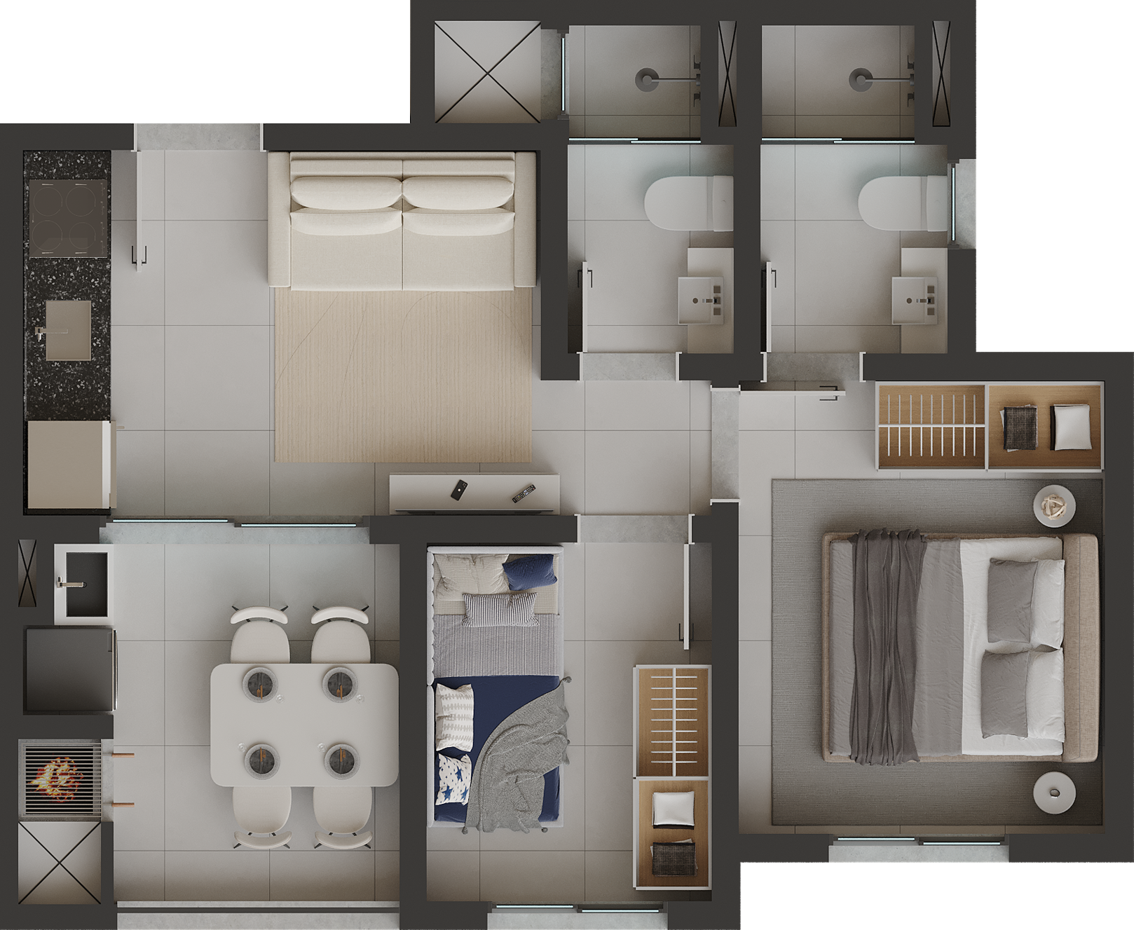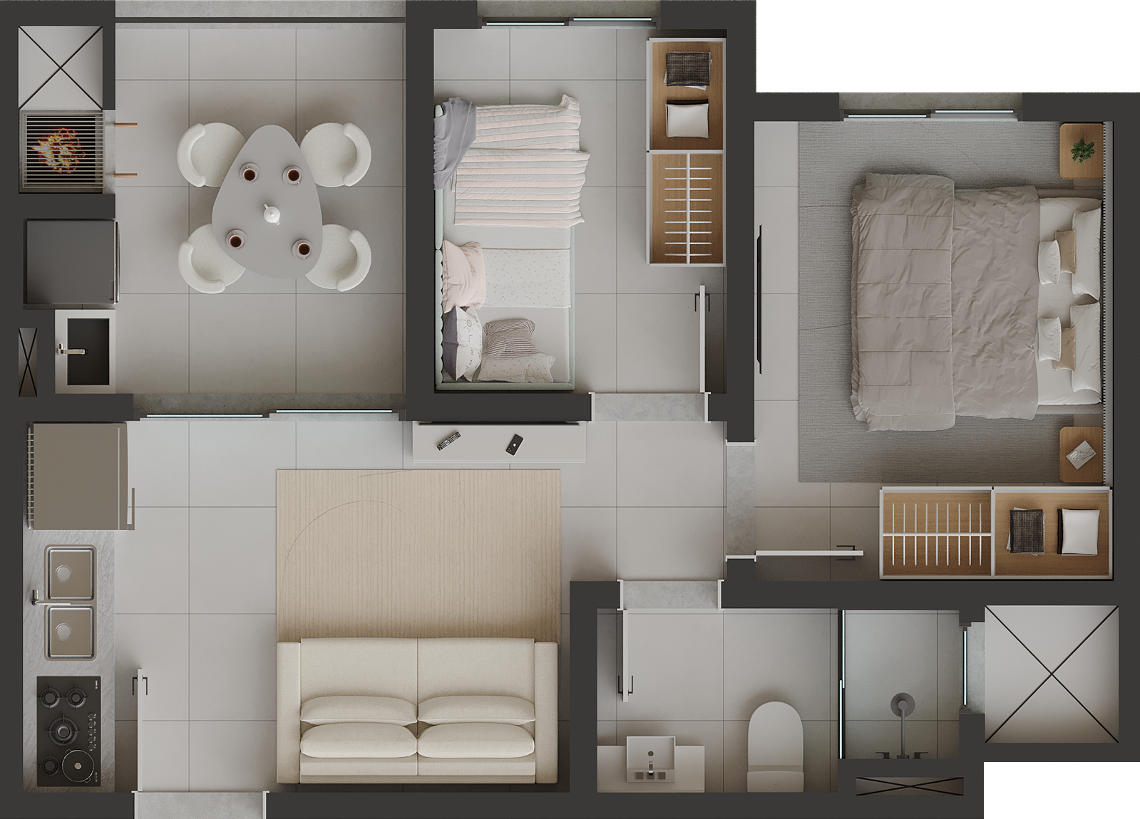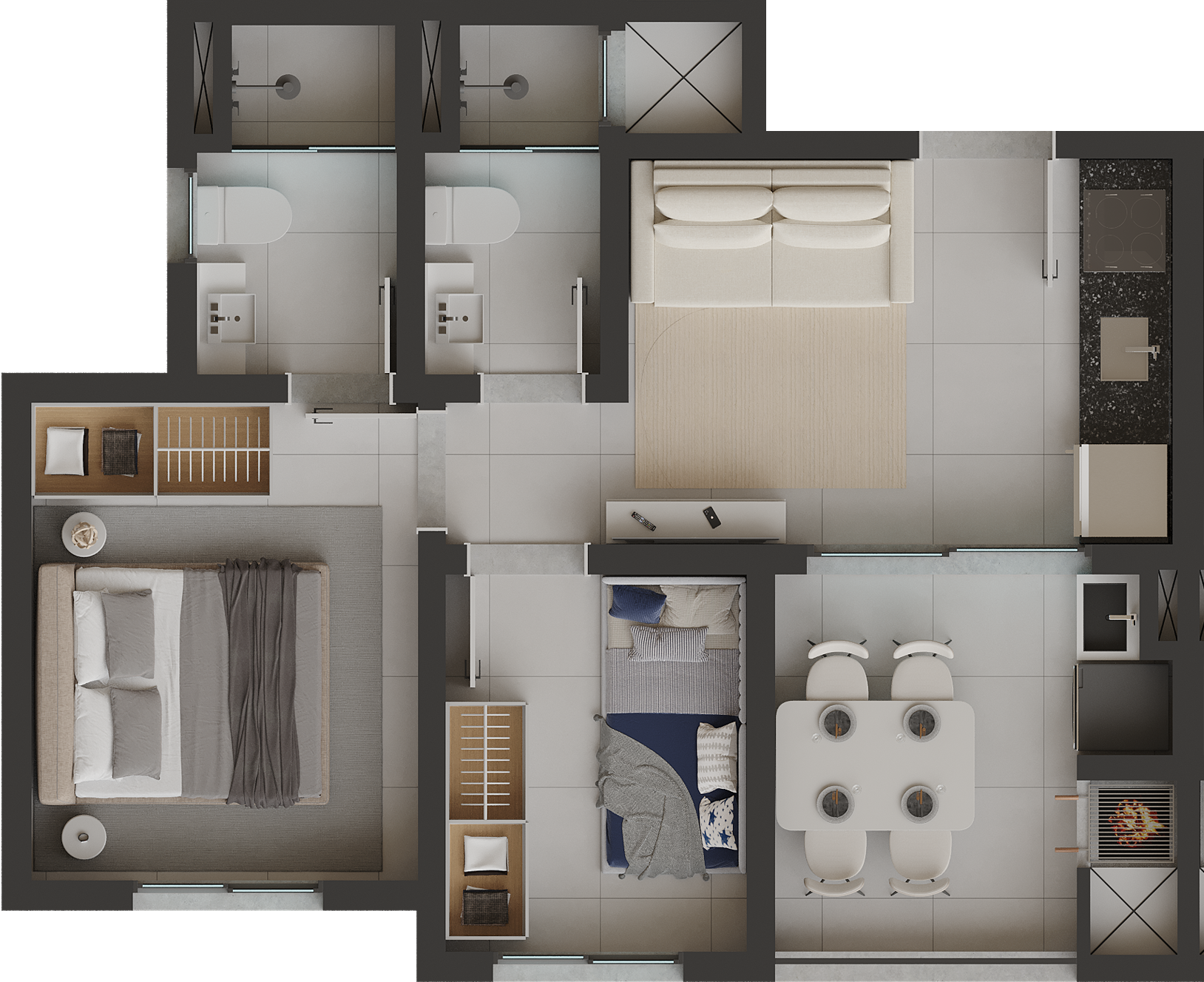 Os apartamentos foram projetados para proporcionar conforto e praticidade no dia a dia, contando com: